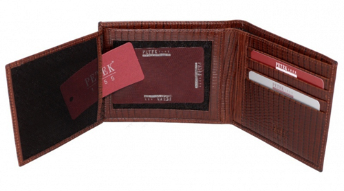 Портмоне раскладывается пополам. Внутри предусмотрены два отделения для купюр любой валюты и номинала, шесть прорезных карманов для кредитных карточек и один из сеточки, три дополнительных потайных отдела, два отделения для документов из прозрачной прочной сетки.