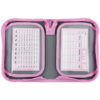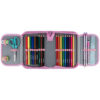 1 відділення, 2 відвороти, резинки для фіксації канцелярії, розклад, таблиця множення, з наповненням (точилка, гумка, лінійка 15 см, фломастери, олівці кольорові, олівці графітні, ручка кулькова автоматична, ножиці 13 см), декор: аплікація з комбінованих матеріалів, вишивка