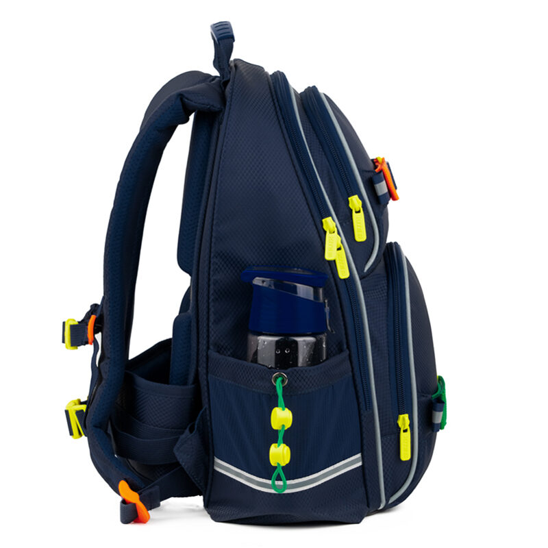 Рюкзак: ортопедическая спинка Ergo Back, съемные нагрудный и поясной ремни, 1 отделение, 2 передних и 2 боковых кармана, карман для телефона, карман для планшета, внутренние разделители, органайзер, ключница, расписание, поле для персональных данных, прорезиненная ручка, ручка-петля, усиленное дно, надёжные замки и фурнитура, светоотражающие элементы, крепление для пенни борда.